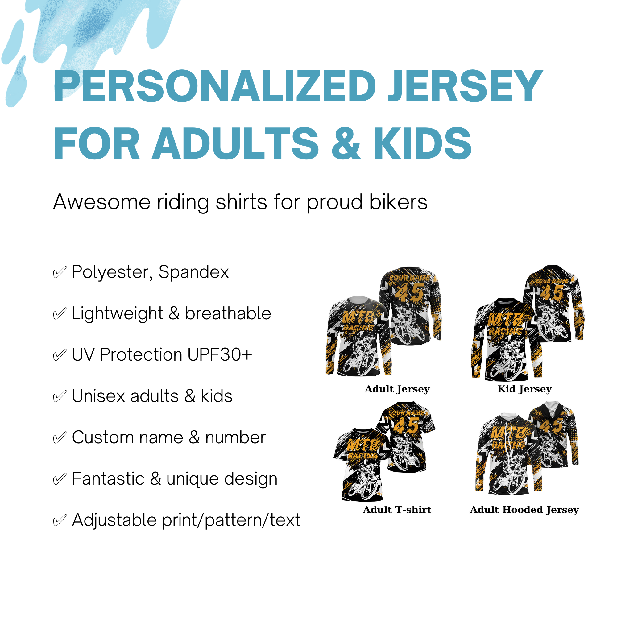 Personalized MTB jersey UPF30+ Mountain bike gear Downhill trails cycling top Adult kid MTB shirt | SLC100