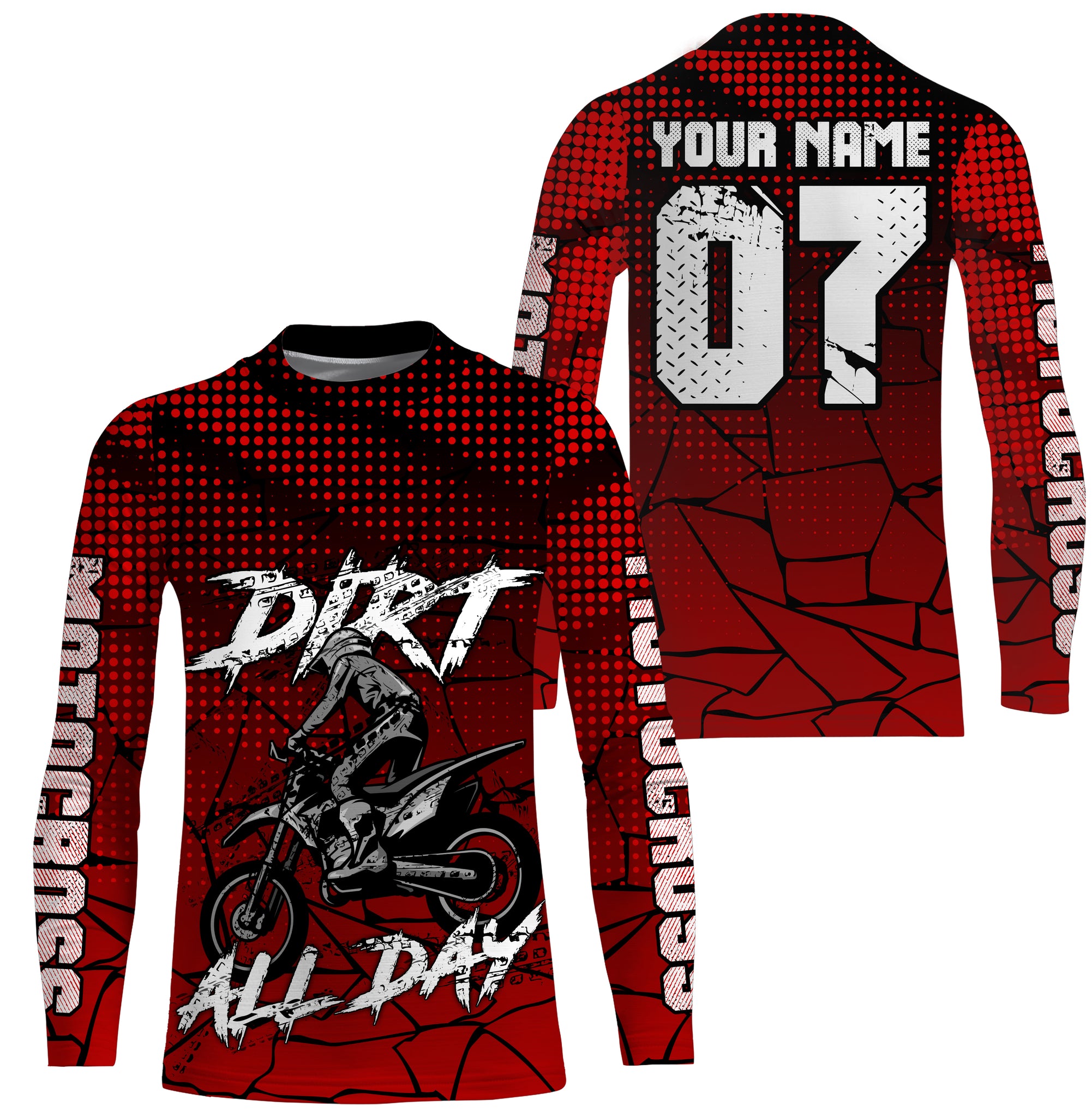 Custom MX racing jersey red Dirt All Day UPF30+ men women kid extreme biker motorcycle shirt PDT87