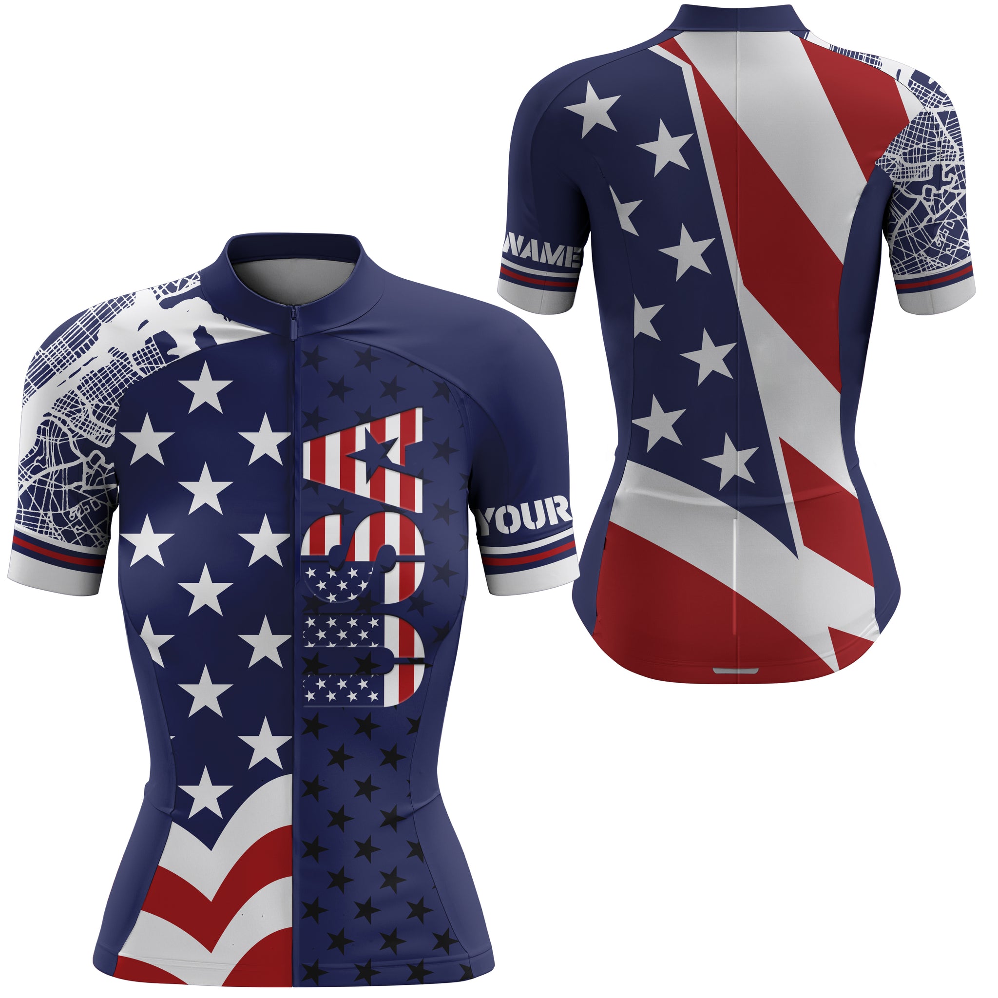 Men & Women American cycling jersey with 3 pockets & full zip UPF50+ USA bike shirt MTB BMX Gear| SLC162