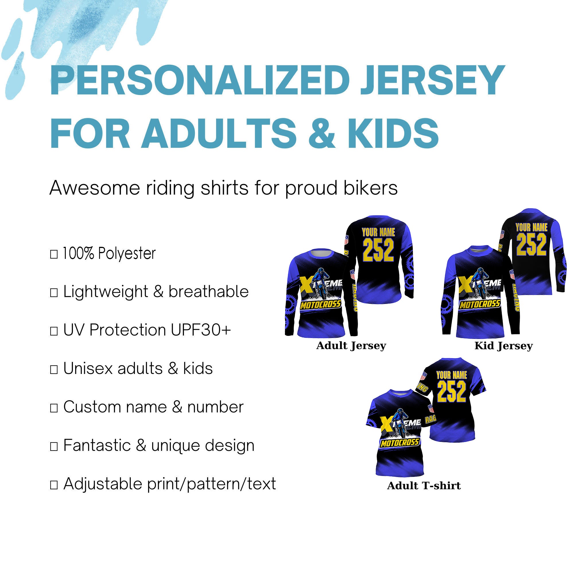 - PERSONALIZED RIDING JERSEY: This super cool shirt is exactly what all bikers are looking for. Add your name/number to make it a unique one that bears your own imprints.