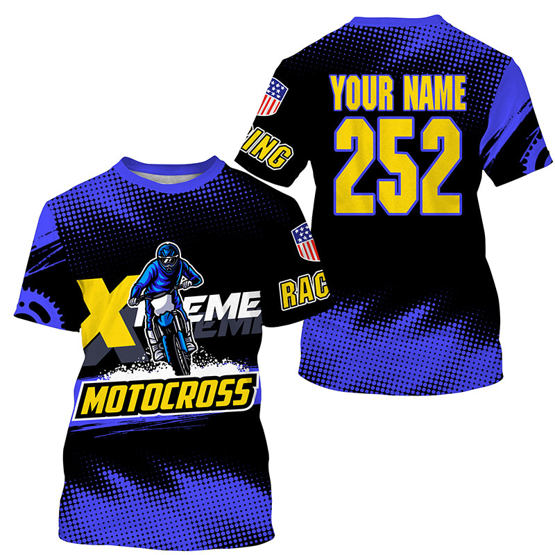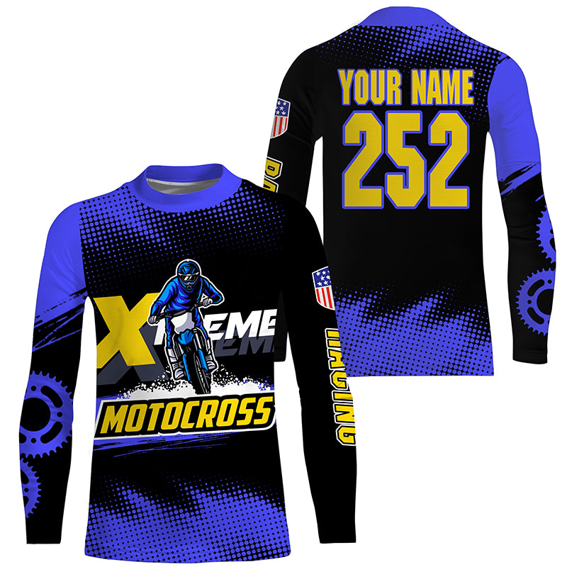 Men women kid Motocross jersey UPF30+ blue extreme personalized MX riding shirt biker off-road PDT242