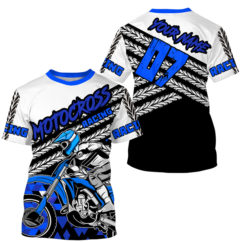 Personalized blue motocross kid men women jersey UPF30+ extreme off-road motorcycle shirt biker PDT414