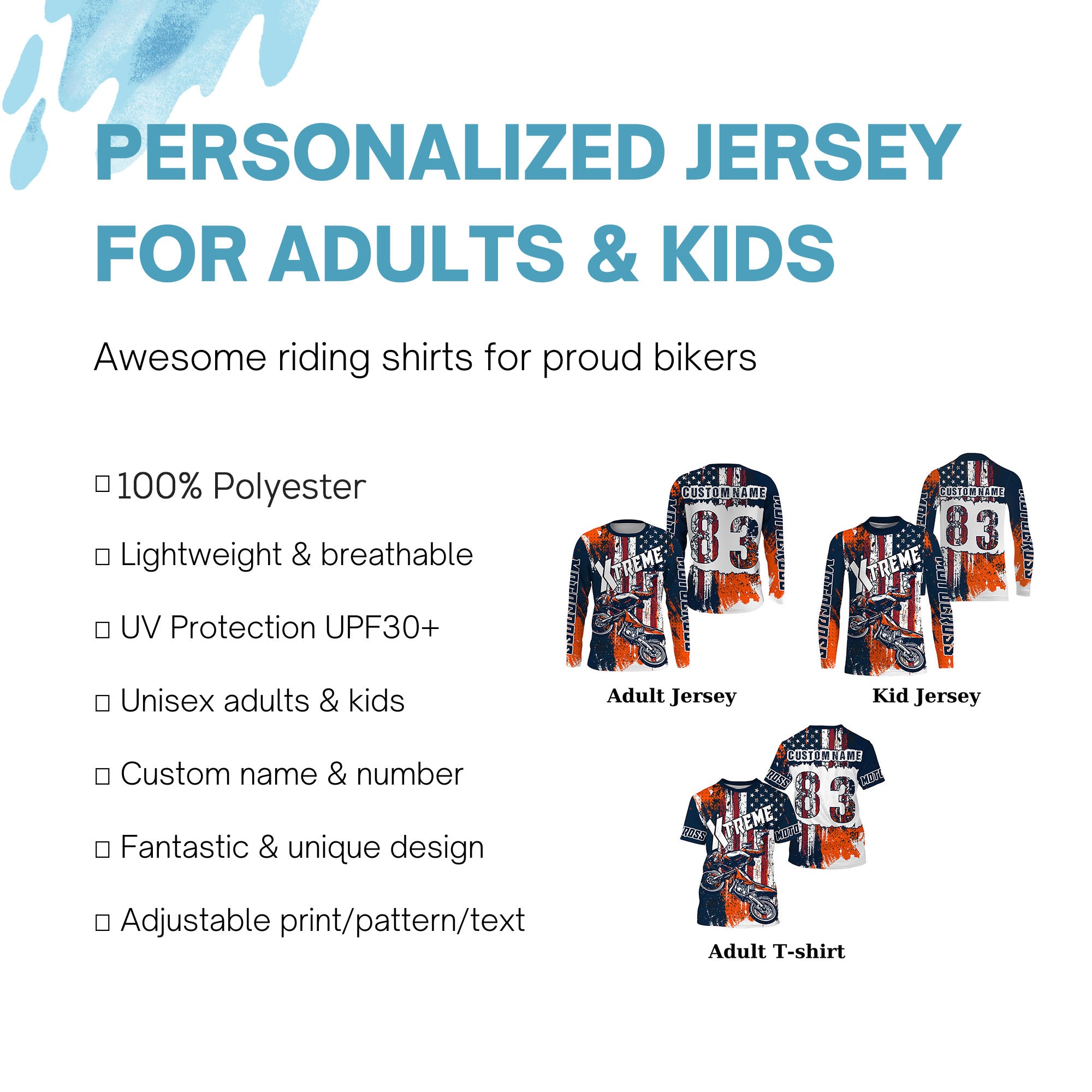 Personalized USA Motocross jersey adult&kid UV protective MX motorcycle Patriotic dirt bike shirt PDT354