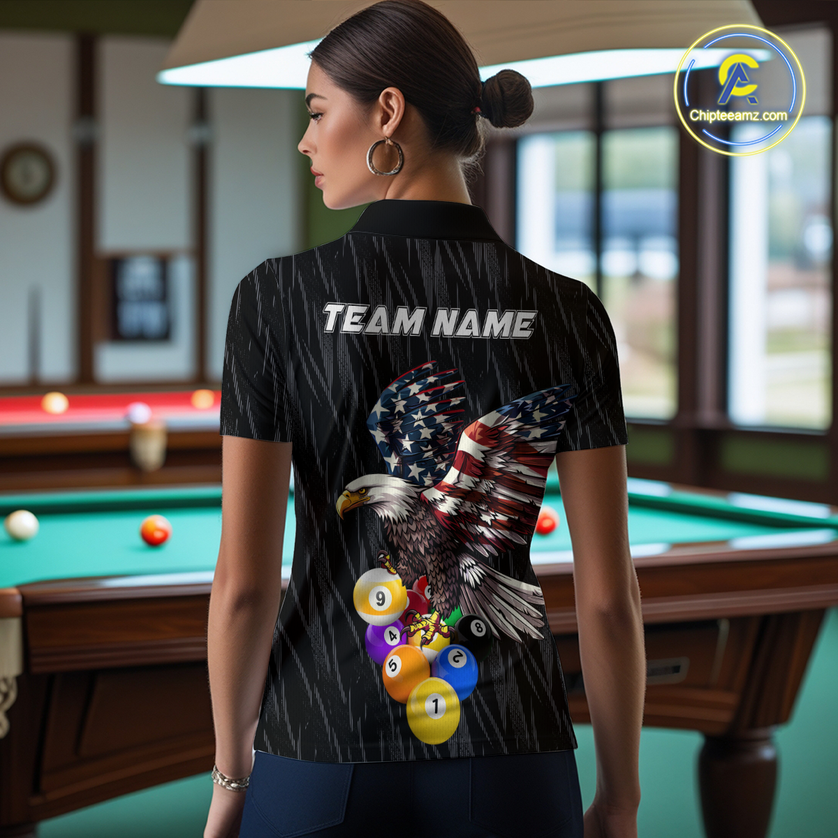 Custom 9 Ball American Flag Eagle Billiard Shirts for Women Billiard Team Shirts Billiard League NNT70