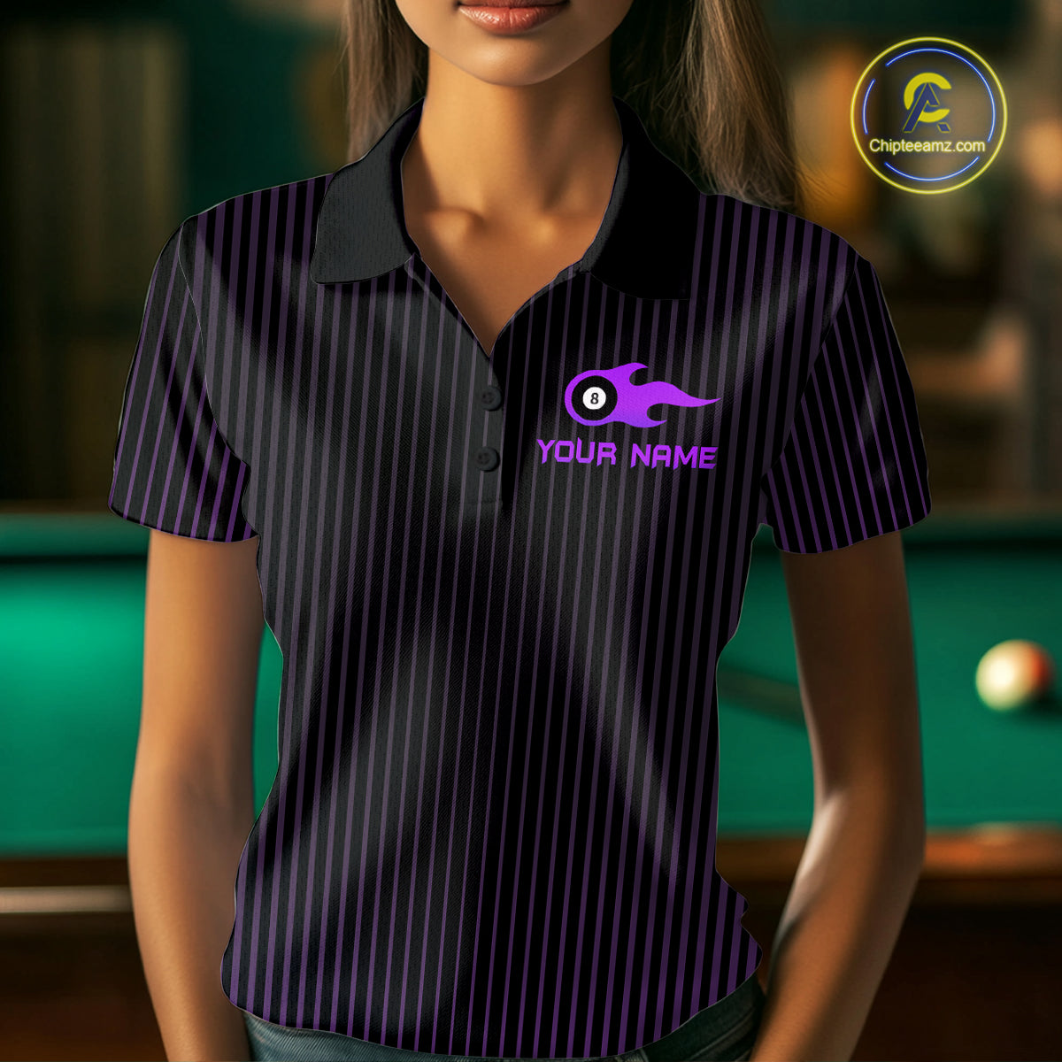 Custom Purple 8 Ball Flame Billiard Shirts for Women, Billiard Team Polo & 1/4 Zip Shirts NNT62