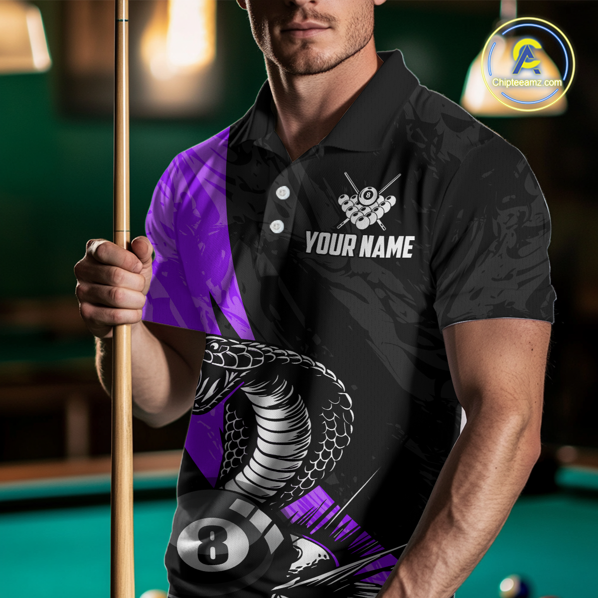 Custom Purple Cobra Snake 8 Ball Pool Billiard Shirts for Men Team Polo & 1/4 Zip Shirts NNT57