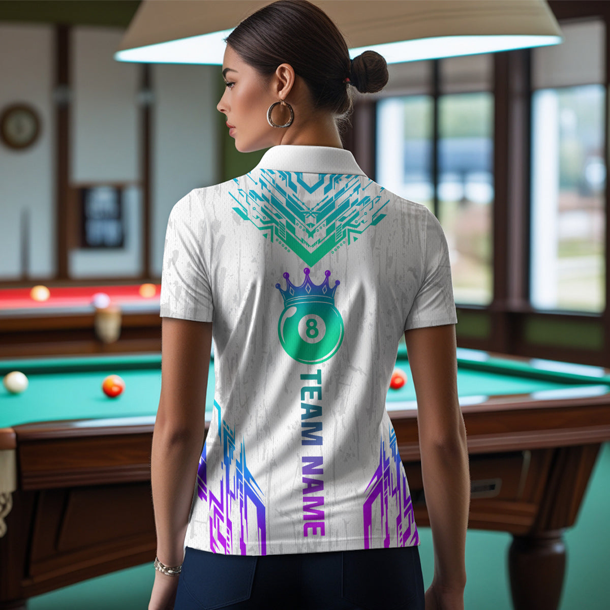 Custom White Neon 8 Ball Crown Billiard Shirts for Women and Team Polo & 1/4 Zip Shirts NNT48