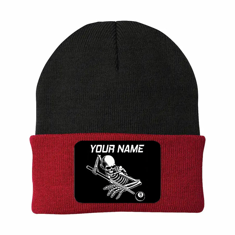Personalized Skull 8 Ball Billiard Knit Beanie Hat With Rectangle Patch Custom Billiard Knit Cap TDM4940