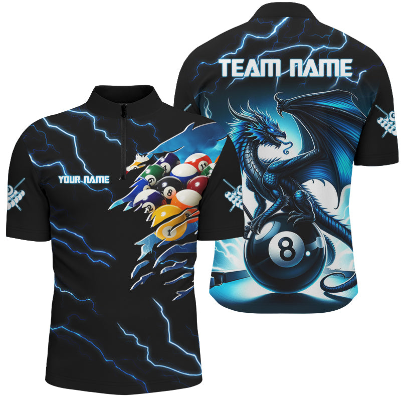 Blue Lightning Thunder Custom 3D Dragon 8 Ball Billiard Shirts, Men Billiard League Team Jerseys TDM2744