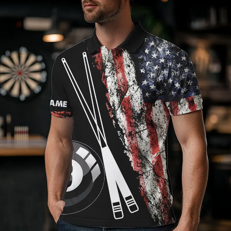 Retro Grunge American Flag 8 Ball Pool Billiard Shirt For Men Custom Patriotic Billiard Team Jersey TDM3349