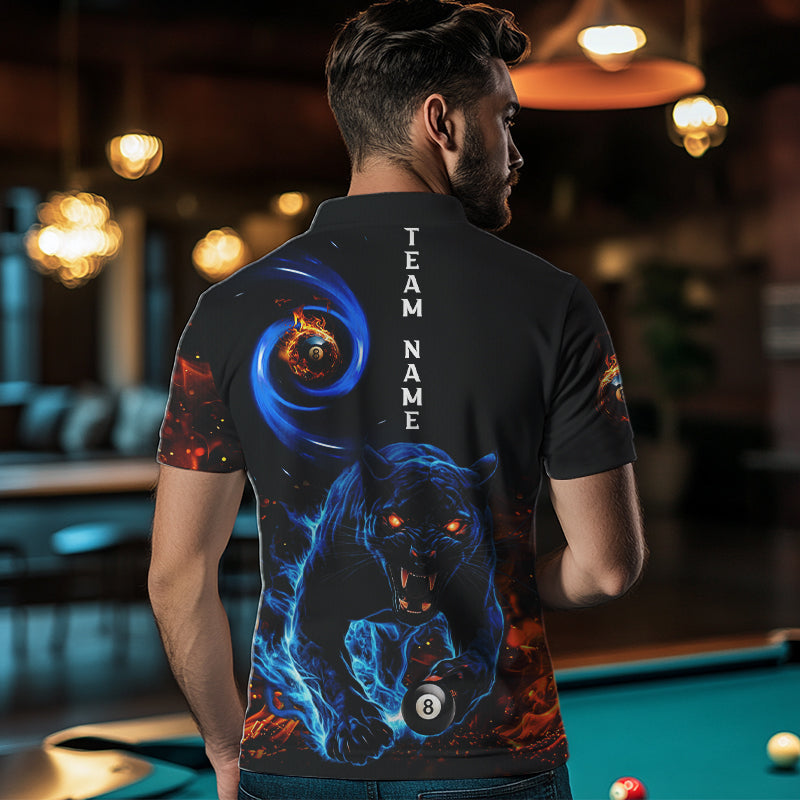Personalized Orange And Blue Flaming 3D Panther Billiard Shirts For Men, Cool Team Billiard Jerseys TDM3600