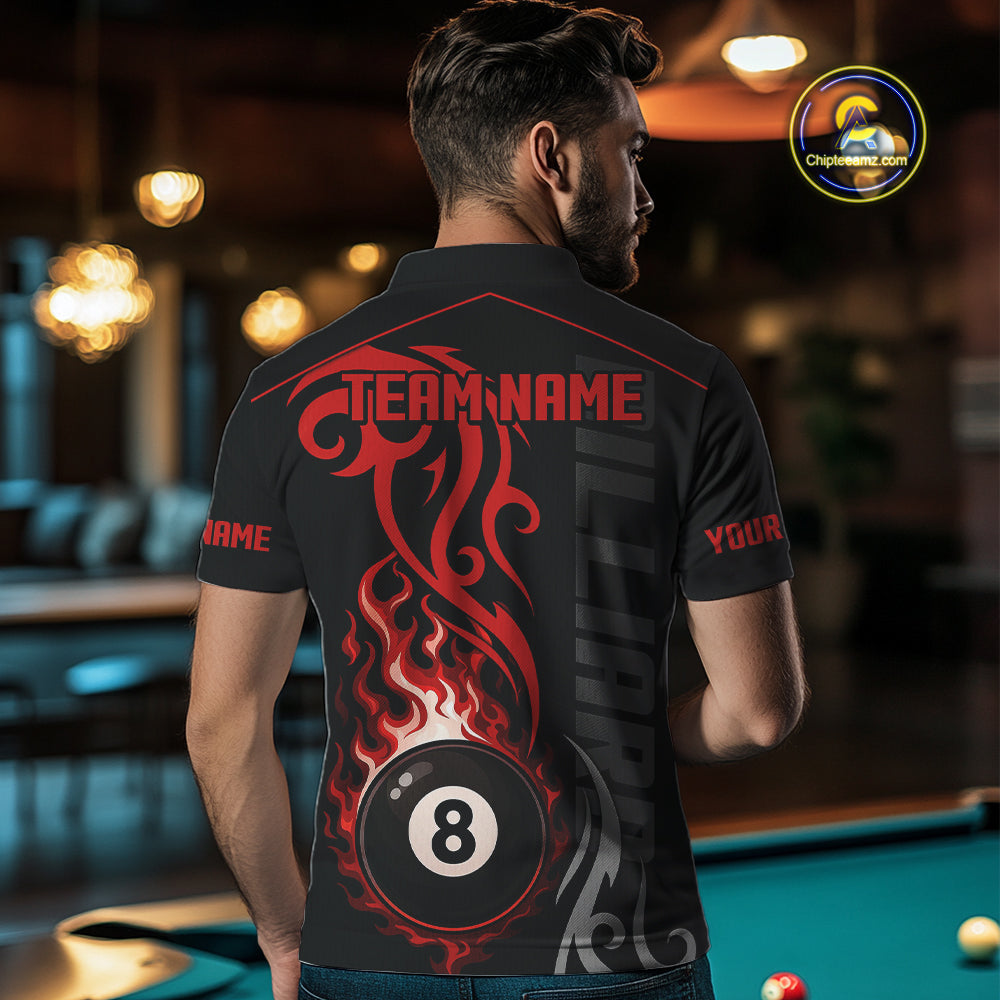Black And Red Tribal Flame 8 Ball Pool Billiards Shirts For Men Custom Pool Team Jerseys TDM4101