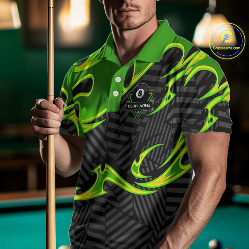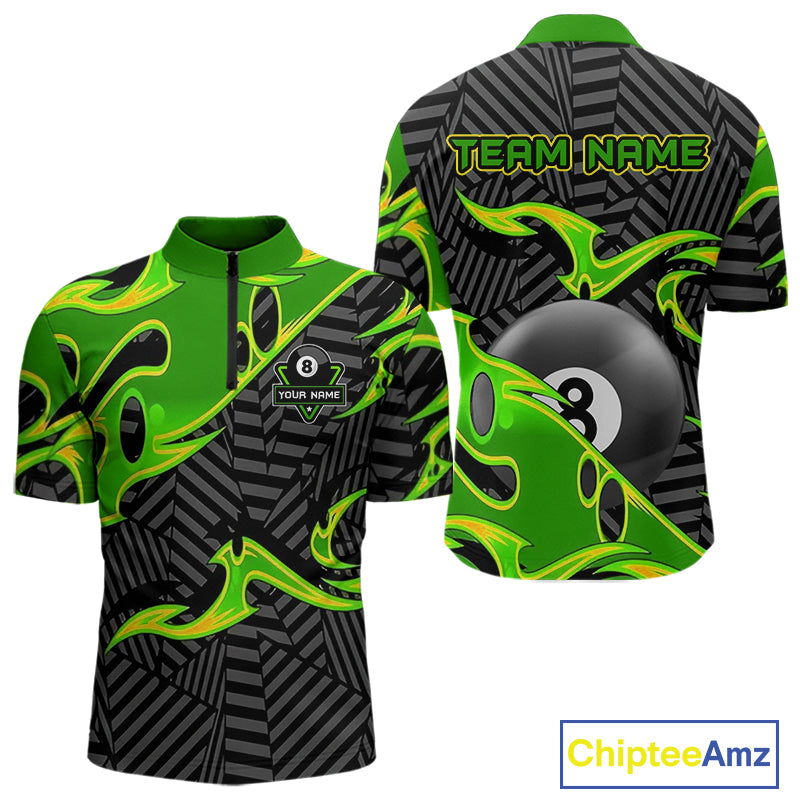 Personalized Black And Green 8 Ball Billiards Pool Shirts For Men Custom Billiard Team Jerseys TDM4200