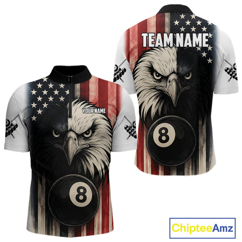 Personalized Vintage American Flag Eagle Billiard Shirt For Men Custom Patriotic Pool Team Jerseys TDM4211