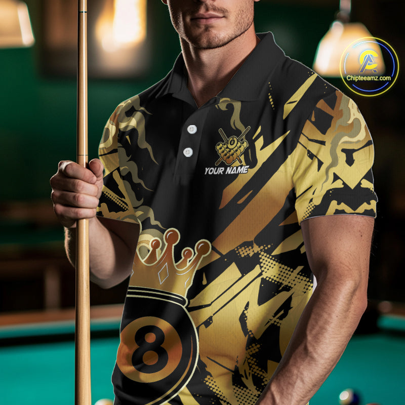 Personalized Golden 8 Ball Crown Billiard Shirt For Men, Pool King Team Jerseys Polo & 1/4 Zip TDM4236