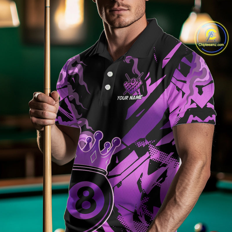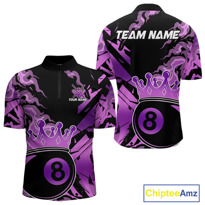 Personalized Purple 8 Ball Crown Billiard Shirt For Men, Pool King Team Jerseys Polo & 1/4 Zip TDM4237