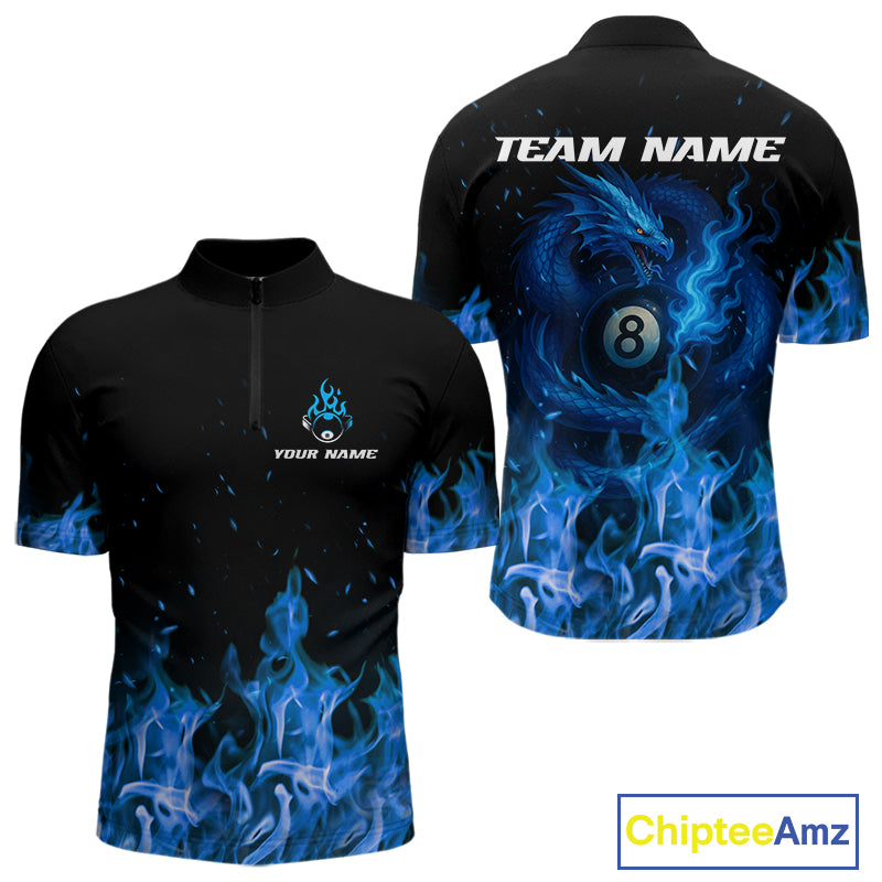 Personalized Blue Flaming Dragon Billiard Shirt For Men, 8 Ball Pool Billiard League Team Jerseys TDM4244