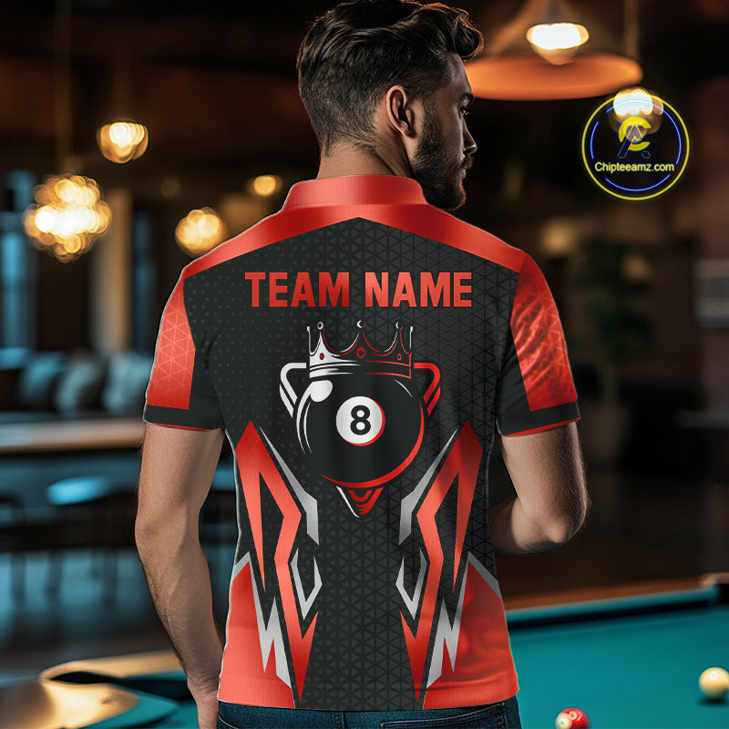 Black And Red 8 Ball Pool Crown Billiard Shirt For Men Custom Billiard Jersey Team Polo & 1/4 Zip TDM4322