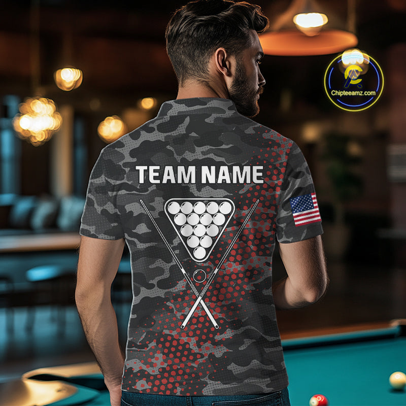 Personalized Red & Grey Camo Billiard Shirt For Men, 8 Ball Billiard Jersey Team Polo & 1/4 Zip TDM4431