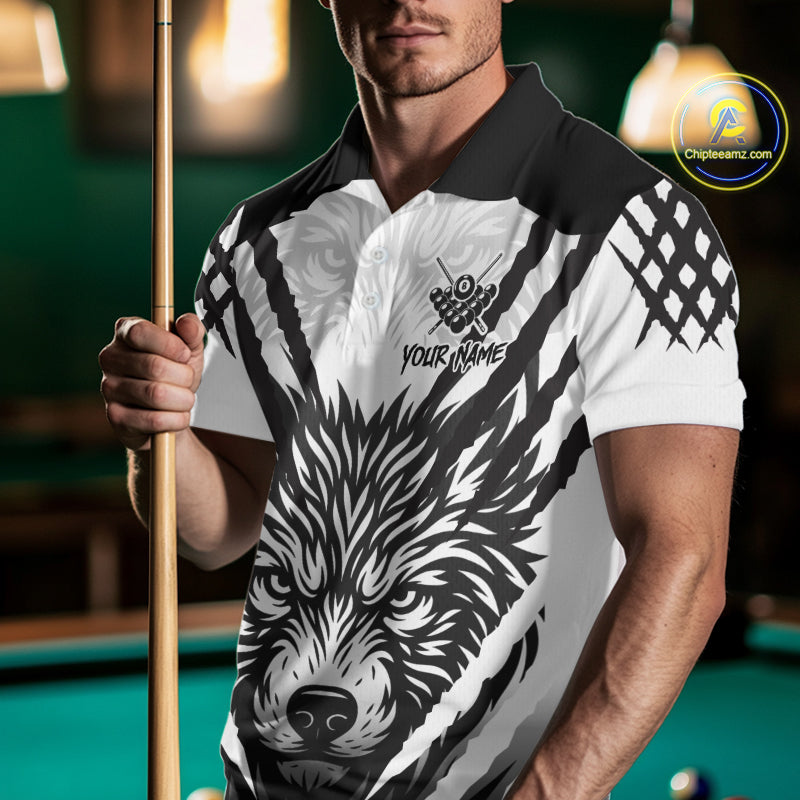 White Black Billiard Jersey Polo & 1/4 Zip Custom 8 Ball Pool Wolf  Billiard Team Shirt For Men TDM4518