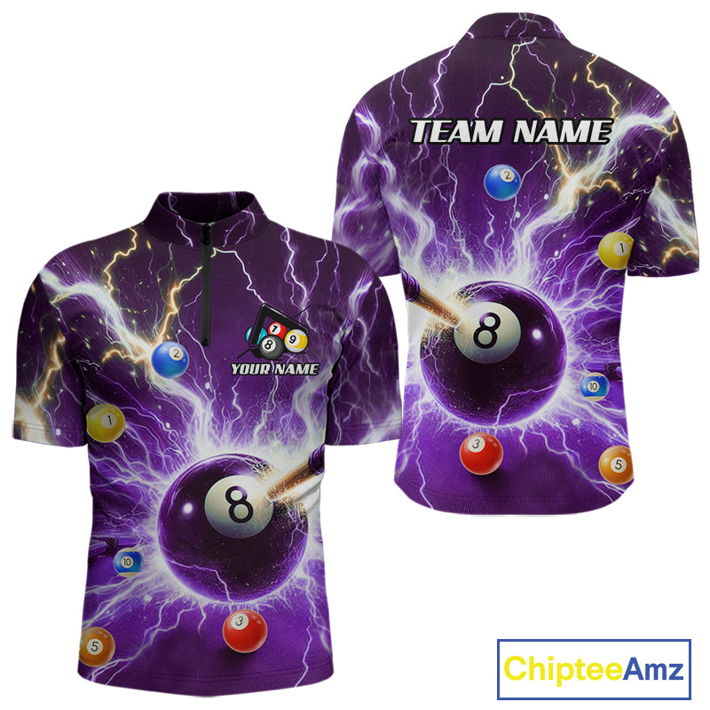 Thunder Lightning Strike 8 Ball Men Billiard Shirts Custom Purple Billiard League Pool Team Jersey TDM4544