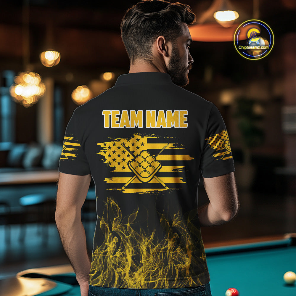 Yellow Flaming US Flag 9 Ball Billiard Shirt For Men Custom Patriotic Pool Player Team Jersey TDM4548