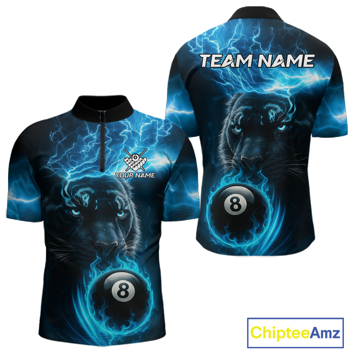 Custom Panther Billiard Polo & 1/4 Zip For Men, Blue Flame 8 Ball Lightning Pool Team Jersey TDM4580