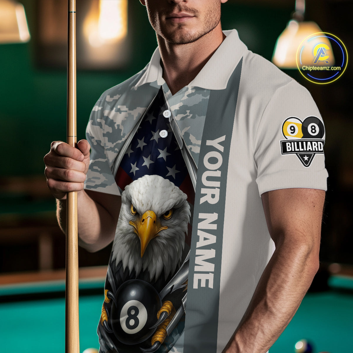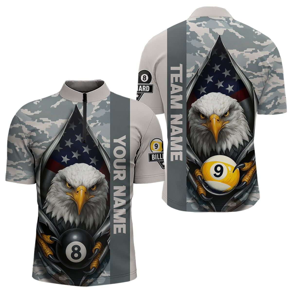 Grey Camo American Flag Eagle 8 Ball & 9 Ball Pool Jersey For Men Custom Billiard Team Shirt TDM4661