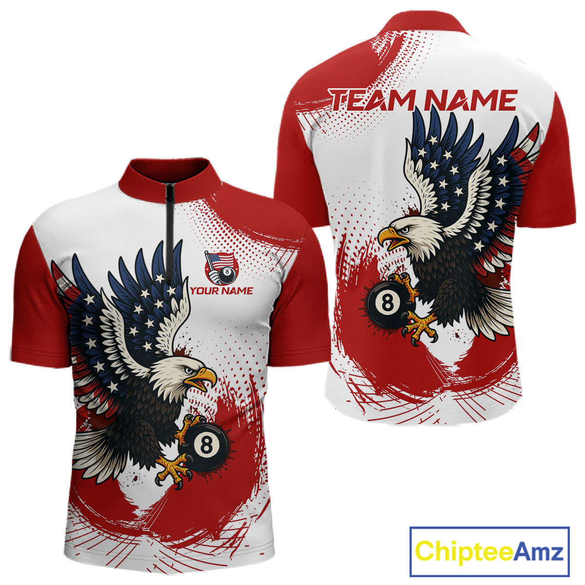 Personalized Grunge Paint Eagle US Flag 8 Ball Billiard Shirt For Men, White Red Pool Team Jersey TDM4786