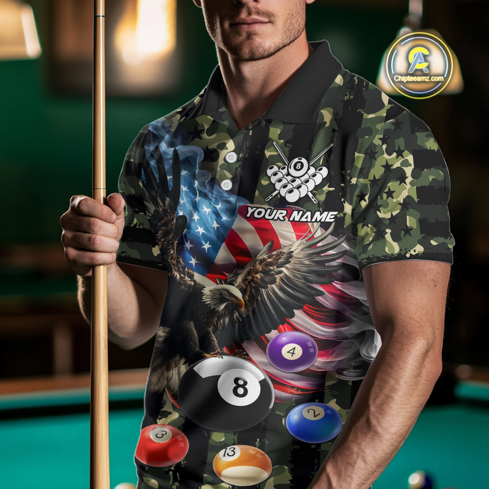 Green Camo American Flag Eagle 8 Ball Billiard Shirt For Men Custom Patriotic Pool Team Jerseys TDM4810