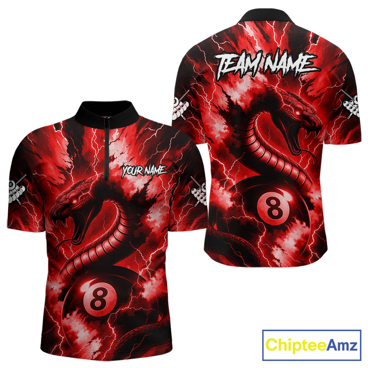Red 8 Ball Thunder Lightning Cobra Snake Billiard Shirt For Men Custom Billiard League Pool Jersey TDM4840