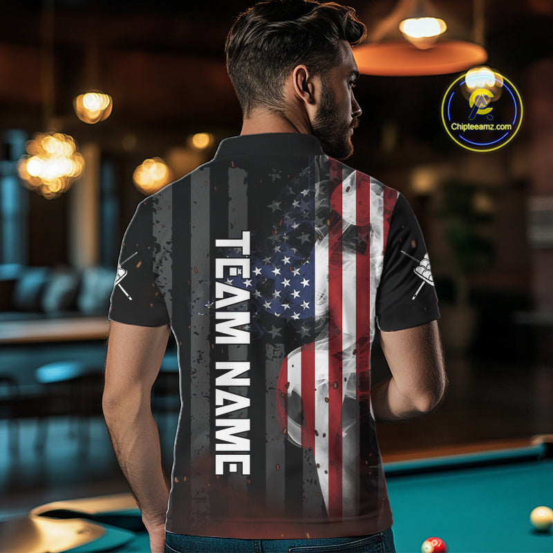 Personalized Vintage Smoke US Flag Billiard Shirts For Men, 9 Ball Pool Patriotic Billiard Jersey TDM4845