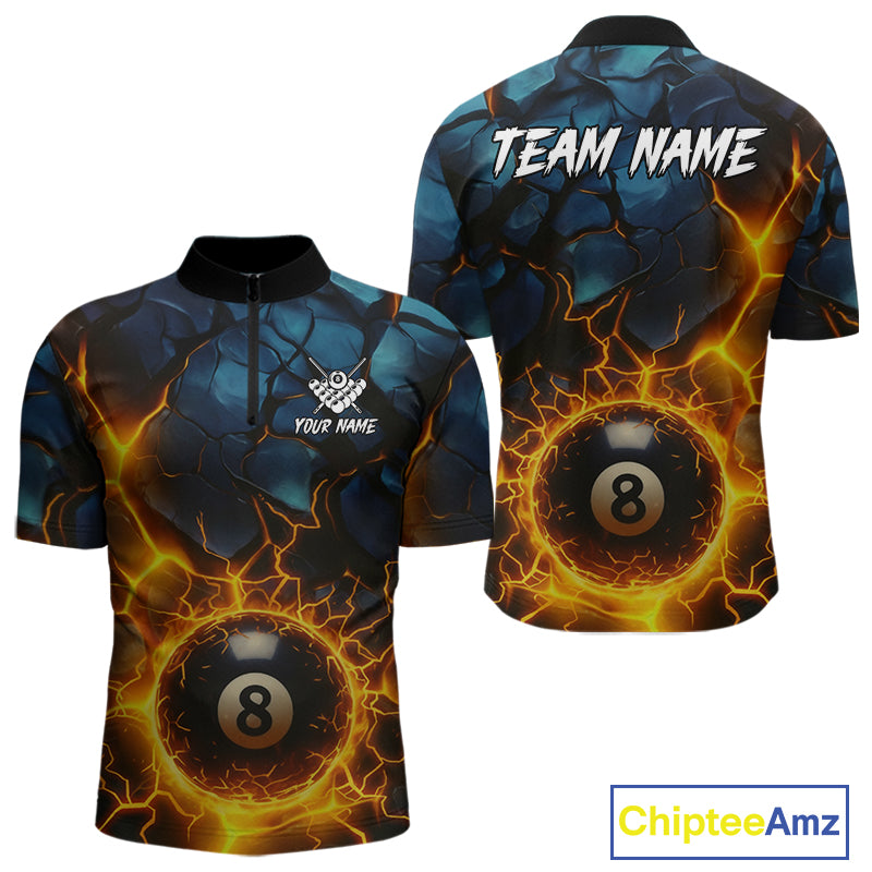 Personalized Fire Cracks 8 Ball Billiard Shirt For Men Custom 8 Ball Pool Jersey Polo & 1/4 Zip TDM5045