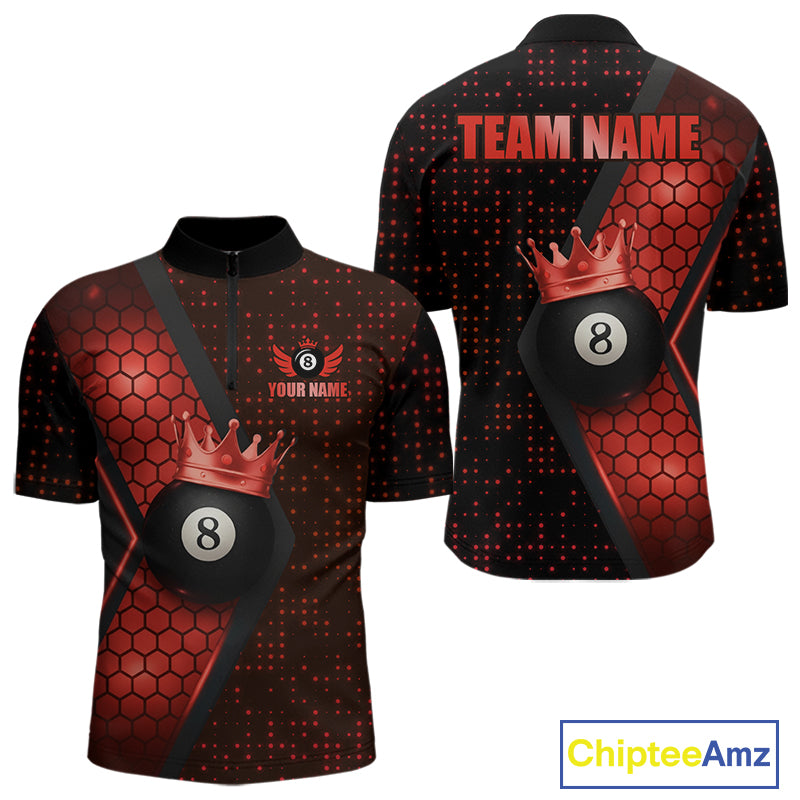 Personalized Red 8 Ball Pool Crown Hexagon Billiard Shirt For Men, Billiard League Team Jersey TDM5047