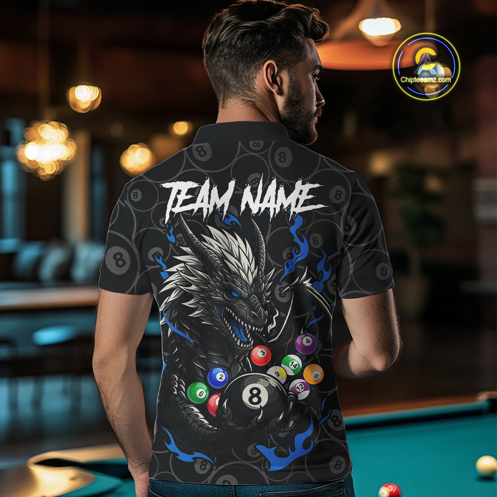 Personalized 8 Ball Dragon Billiard Shirt For Men, Billiard Team Jersey Polo & 1/4 Zip |Blue TDM5110