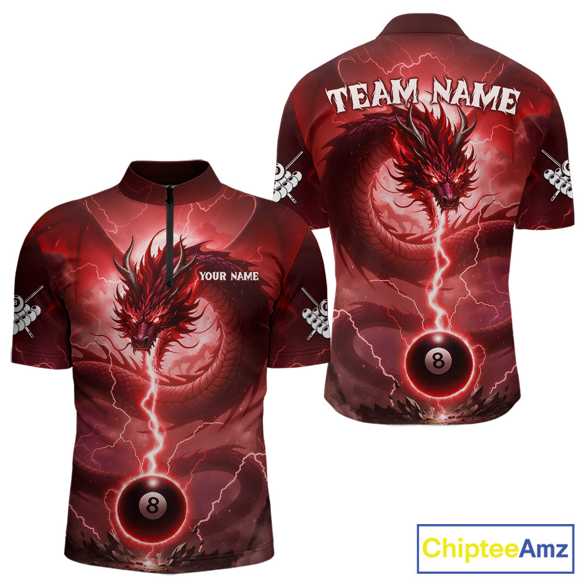 Red 8 Ball Lightning Dragon Billiard Jersey For Men Custom Pool Team Shirt Polo & 1/4 Zip TDM5116