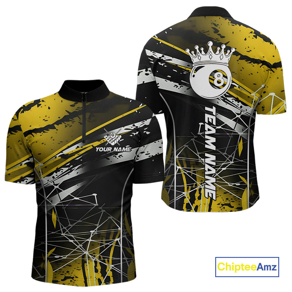 Black And Gold 8 Ball Crown Men's Billiard Shirts Custom Billiards Jerseys, Pool League Team Shirt TDM5132