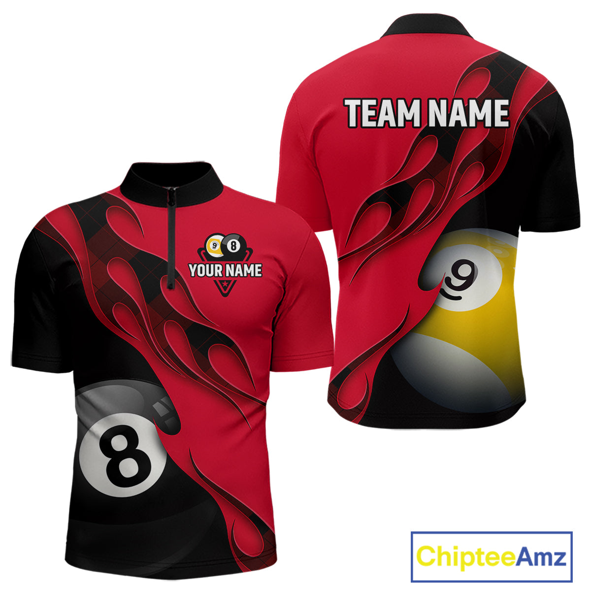 Black And Red Billiard 8 Ball & 9 Ball Pool Shirt For Men Custom Billiard Team Jersey Uniform TDM5162