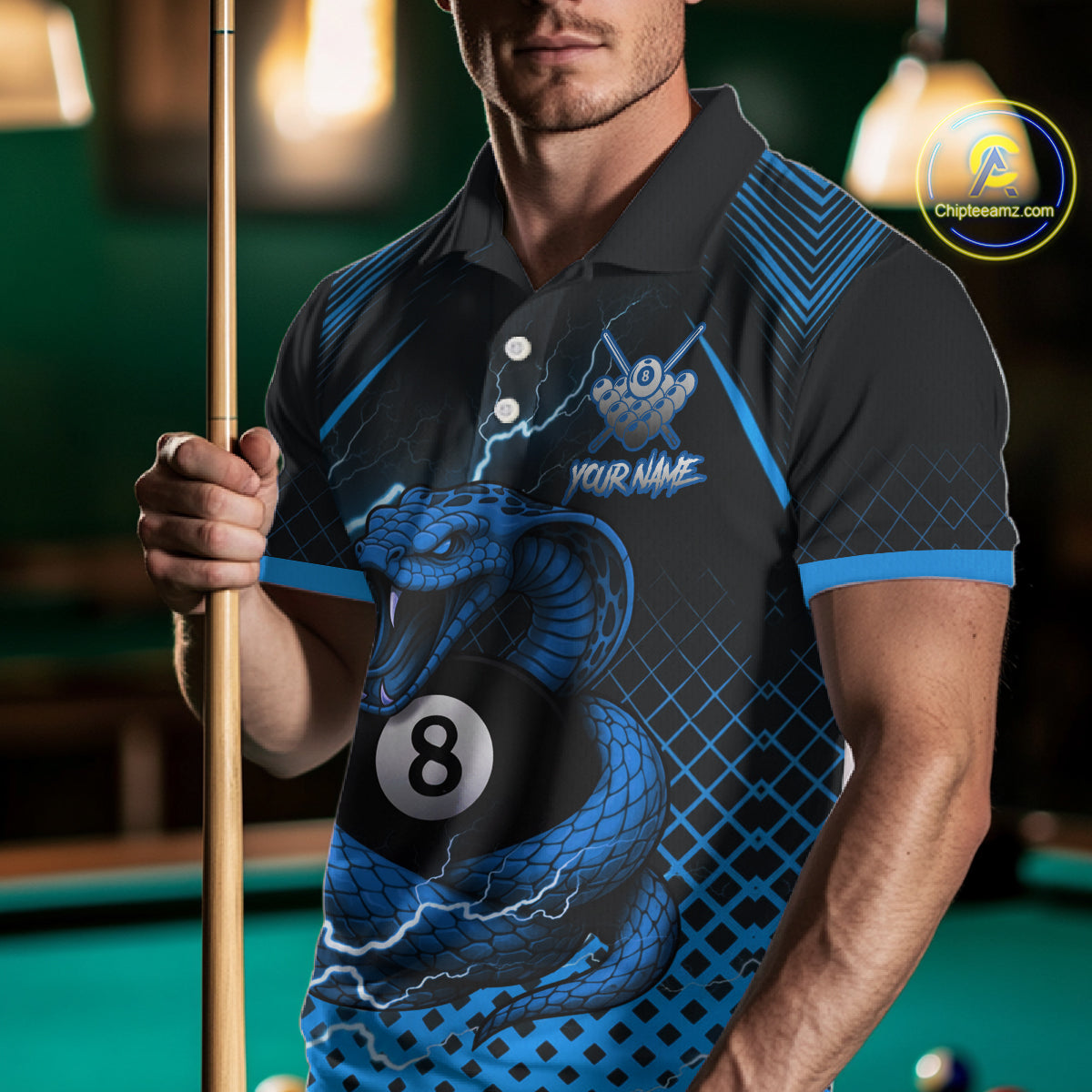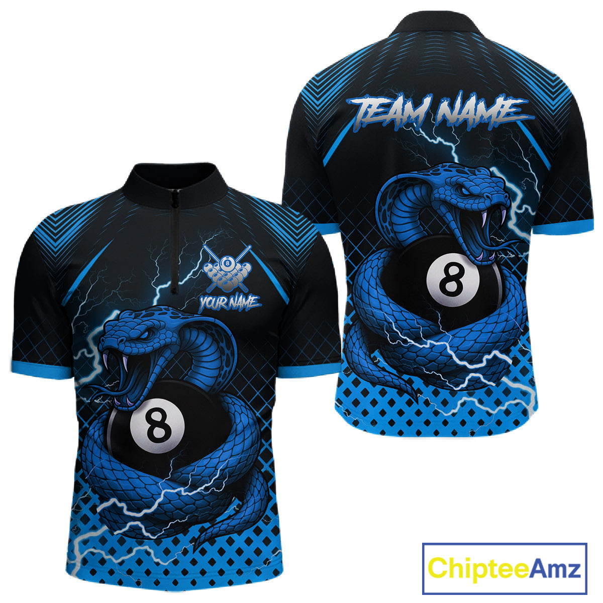 Personalized Blue 8 Ball Lightning Cobra Snake Men's Billiards Shirts Custom Pool Team Jerseys TDM5198