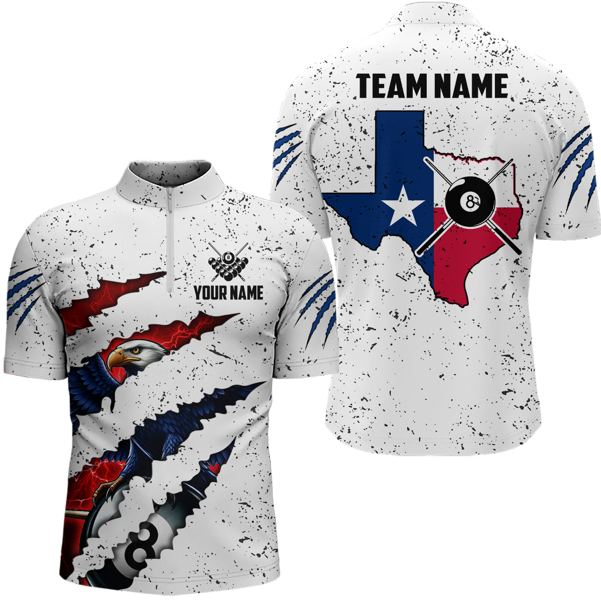 Customized Eagle Texas Flag White Grunge Billiard Shirts For Men, Patriotic Billiard Team Jerseys TDM2319