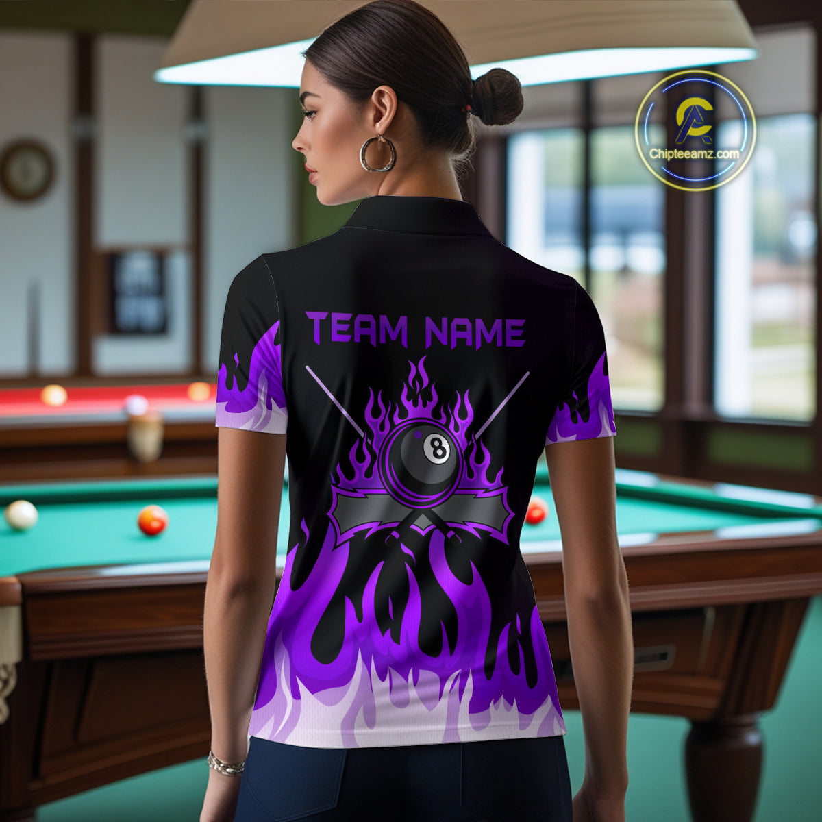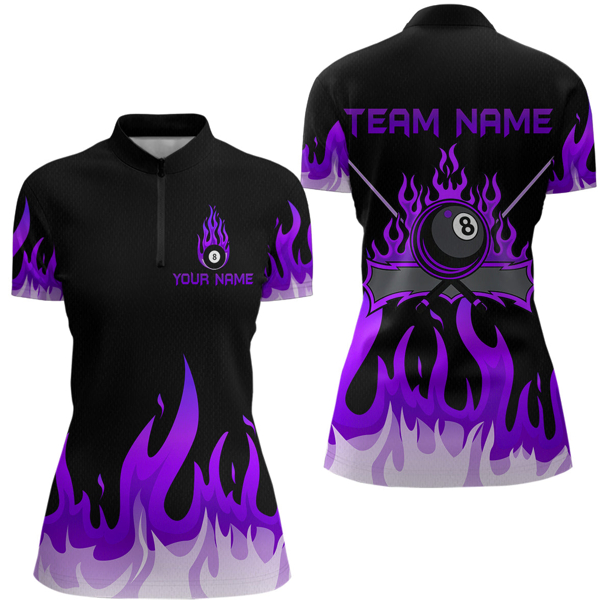Custom Purple 8 Ball Pool Flame Billiard Shirts for Women Billiard Team Polo & 1/4 Zip Shirts NNT63
