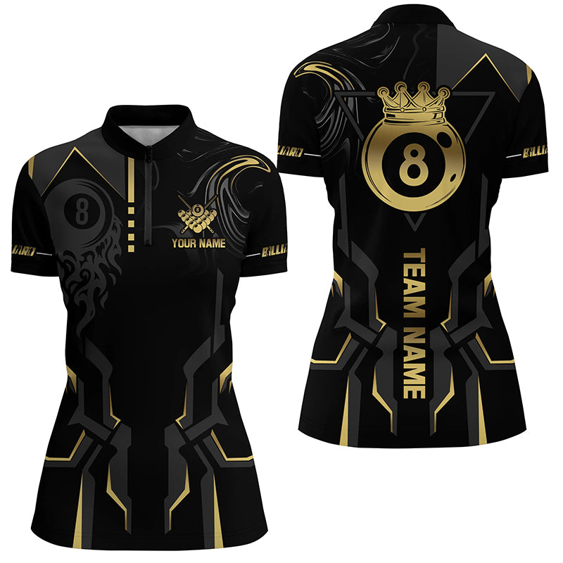 Customized 8 Ball Pool Crown Women Billiard Shirts, Gold And Black Billiard Team Shirts, Pool Jerseys TDM2645