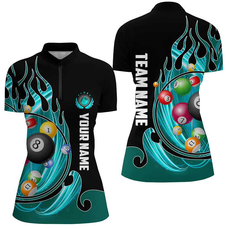 3D Billiard Balls Fire Flame Custom Pool Shirts For Women, Billiard League Team Jerseys | Cyan TDM2720