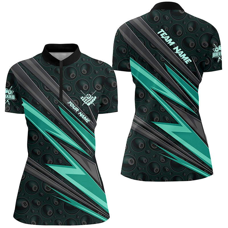 Personalized Name Turquoise Billiard Jerseys For Women Custom 8 Ball Billiard Shirts Pool Team Jersey TDM2855