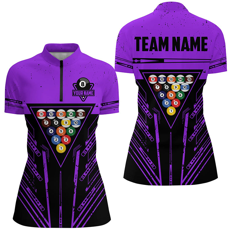 Personalized Purple Billiard 8 Ball Rack Polo & Quarter-Zip Shirts For Women, Billiard Team Jerseys TDM3001