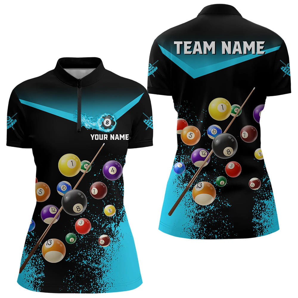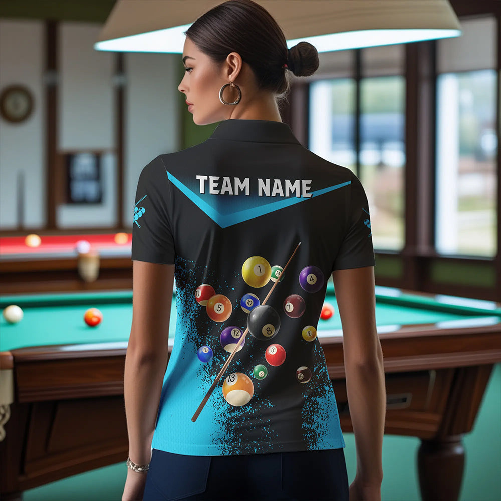 Personalized Grunge Blue Black 3D Pool Balls Women Billiard Shirts Custom Billiard Jerseys For Team TDM3440