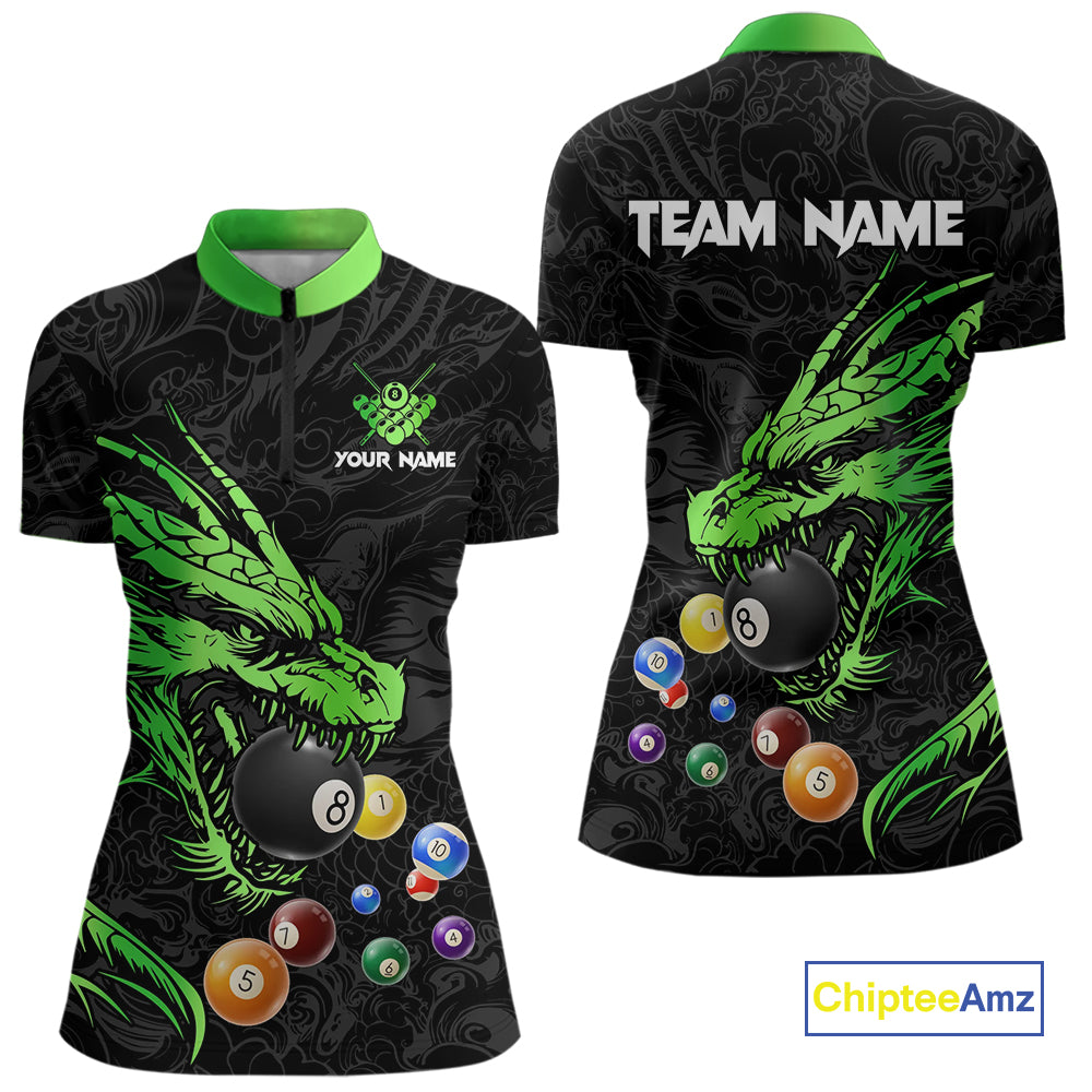 Personalized Green Black 3D Dragon Billiard Balls Pool Shirt For Women, Billiard League Team Jersey TDM4341