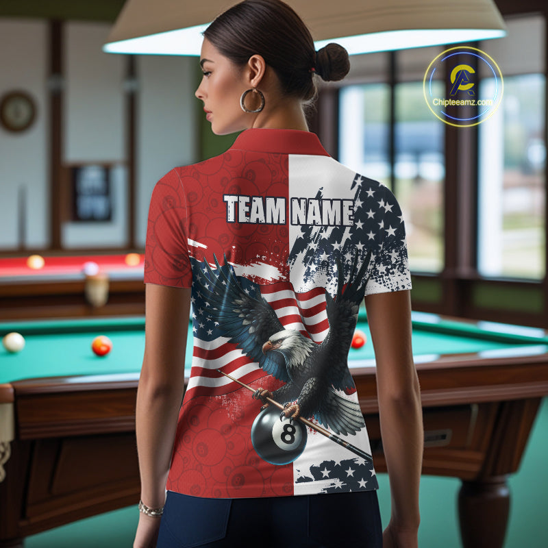 Personalized American Flag Eagle Women Billiard Shirt Custom Patriotic 8 Ball Pool Team Jersey |Red TDM4370