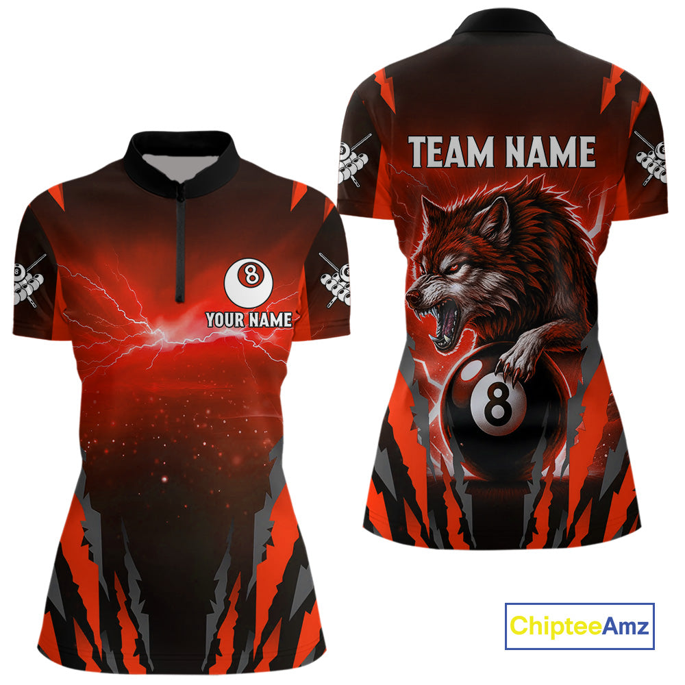 Personalized Thunder Lightning Wolf Billiard Shirt For Women, 8 Ball Billiard Team Jerseys |Red TDM4549