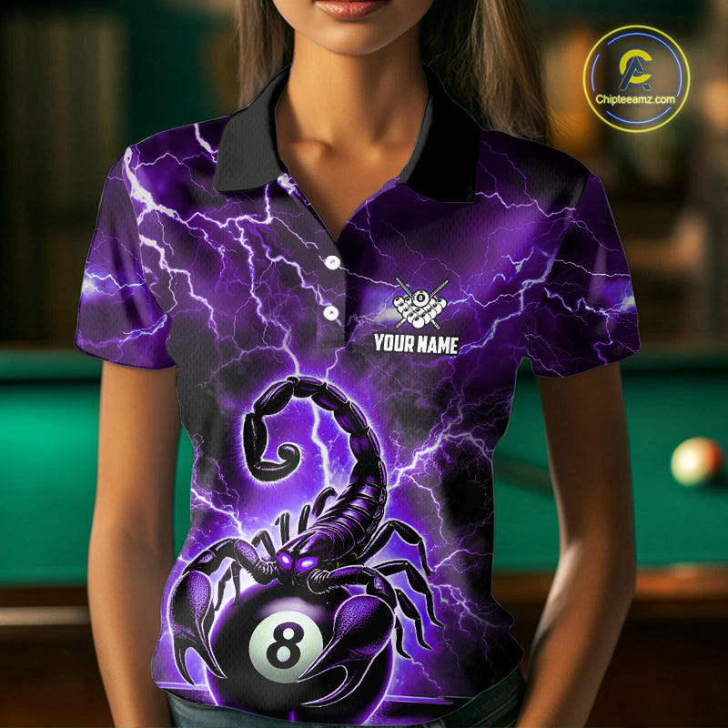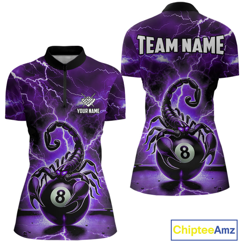 Purple Thunder Lightning Scorpion 8 Ball Pool Polo & 1/4 Zip For Women Custom Billiard Team Jersey TDM4862